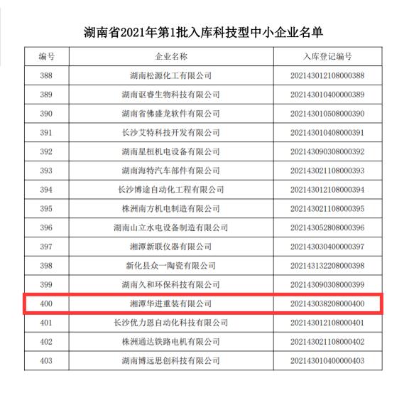 根據《科技型中小企業評價辦法》(國科發政〔2017〕115號)和《科技型中小企業評價辦法工作指引(試行)》(國科火字〔2017〕144號)要求,經審查、公示通過,華進重裝等788家企業入選2021年第一批擬入庫科技型中小企業名單。